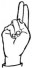 На ћирилици написано ЛАВ ЈОВАНЧЕВИЋ састоји се из 13 слова [?]. Исписано ћириличном једноручном азбуком за глувонеме: